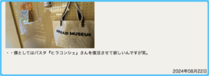 最後に厚かましくも呟いていました『・・僕としてはパスタ『ヒラコンシェ』さんを復活させて欲しいんですが笑。』なんて・・。