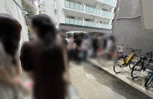 右手のマンション駐車場奥での行列?が⬆︎の写真。