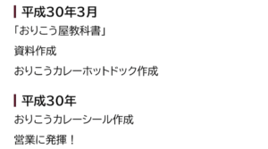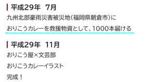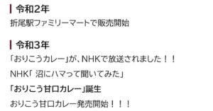 さらにHPでは『おりこうカレー』誕生から大活躍の年表も。⬇︎