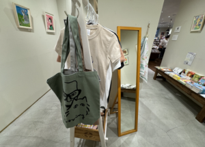 トートバッグやTシャツなども展示販売。⬇︎
