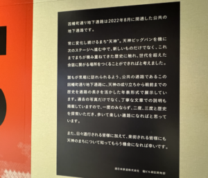 そんな江戸時代からの天神の成り立ちを、通路の長さを活かした年表形式で展示してありました。⬇︎