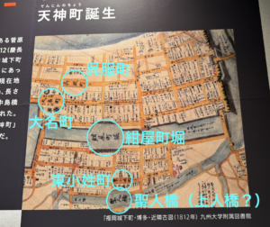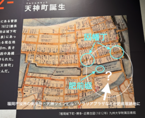 その中では、昭和初期の天神とちょっと前の天神のビルとの位置比較を示したこちらがとても参考になりました(しばらく眺めていました)。⬇︎