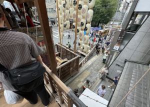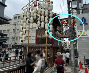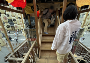 ここから階段を上って鉾内へ(結構急で狭いので皆さん及び腰です笑)。⬇︎