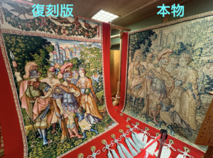 『鶏鉾』の会所2階には国の重要文化財に指定されているベルギー製のタペストリーが展示されていました。
