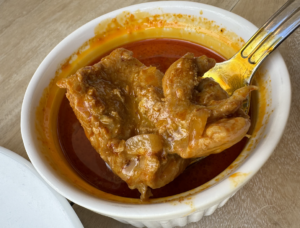 実は日曜夕に帰福し、地下鉄で博多駅へ戻り、阪急さん地下で『ナイル』さんへでも寄っていこうと・・並んだら・・、すみませんライスが一人分しか無くて・・。