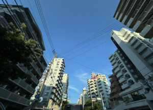 雲ひとつない見渡す限りの青・・・という程には空が見えていません笑。