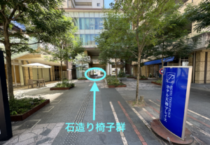 ホテルとマンションが一体化しているビルで、昔はよくこちらの石作りの椅子で休憩していました笑。