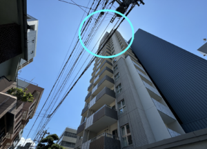僕を責め立てる太陽が、この高いマンションの頂点にギリギリ隠れています。