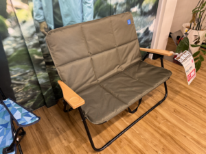 そのままアウトドア階を訪れ、こんな2人がけ簡易椅子を見かけました。⬇︎