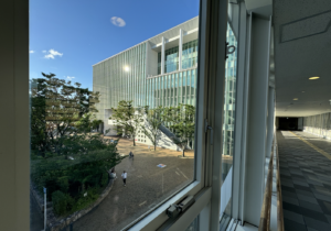 こんな日にドーナツ店でも無いでしょうと言いたくなるような日でしたが笑、すぐ近くの某新ビルの最上階へ潜入し、厚かましくもカフェ部のテラス席を見学させて頂いたその時に・・。