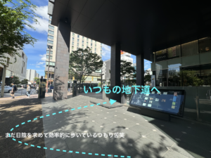 さて、リバレイン建物内で信号待ち(外で待つと暑過ぎで笑)。⬇︎
