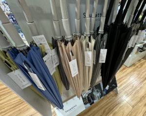 他にも軽い軽い携帯傘や、筒に仕舞い込む携帯傘、柄が秀逸な傘など盛りだくさんでした。