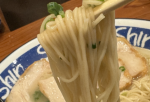 麺が細いですねー、なのでしっかりスープが絡んで美味しかったです。