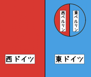 ベルリンは元々東ドイツ領にあって、そのベルリンを東西に隔てたのがベルリンの壁だと・・。⬇︎