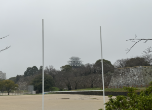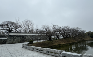 小雨ではありましたが、僅かに咲いている桜も、ライトアップされていない天守閣も見れて十分な散策でした(小さな喜びが一番笑)。