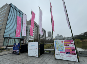 公園の一部がお花見特設会場になっている様子。⬇︎