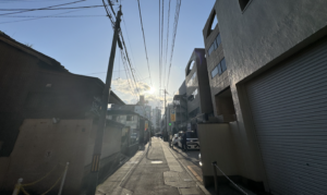 この感じで先日話題にした『櫛田神社南門』から『かろのうろん』さんまでの小径も何かありませんかね?笑。