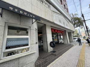 重厚な建物の一階に佇む喫茶店『セヴィリア』さんです。
